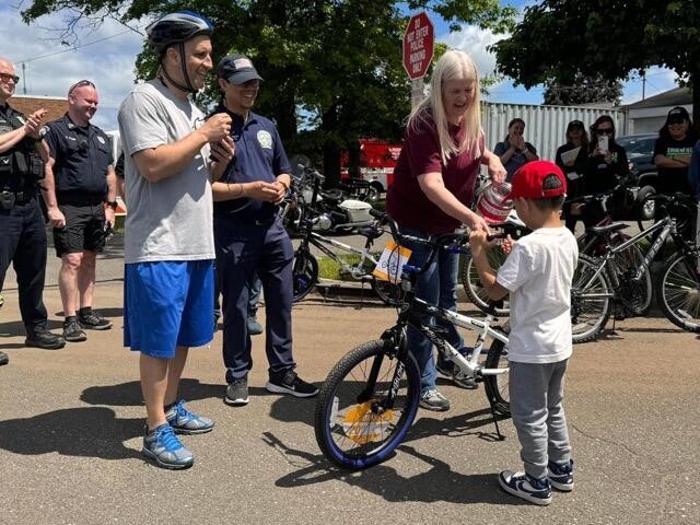 The Bergenfield Police Department thanks all those who participated in the annual Bike with a Cop event this past Sunday. The event included refreshments and free helmets to the first fifty registrants. At the conclusion of the bike ride, the participants were excited to see if their raffle ticket was picked for one of seven bicycles, which were generously donated by the Borough of Bergenfield, the Bergenfield PBA, The Dominoes Club, Tony’s Pizza, and Jamis Bicycles.